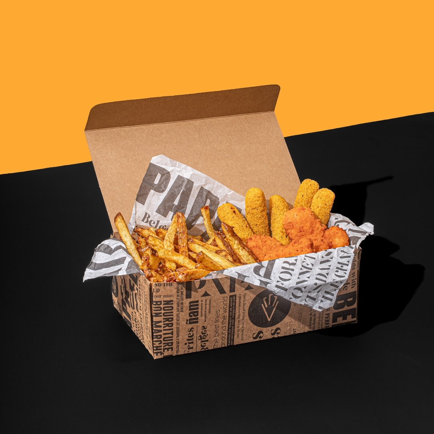 Papas fritas belgas crujientes y doradas, perfectas para acompañar.